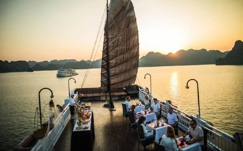 Taste our most exquisite drinks varied vastly in the selection while enjoying the scenic panorama view of Halong Bay with the "Happy Hour" promotion.